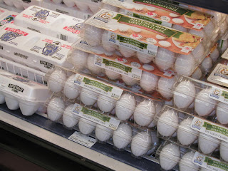 Tant qu'on est du côté des trucs "space", faut que je vous parle des oeufs... ici, ils sont tout blancs, et au départ ça surprend. Je me demande ce qu'ils leur donnent à manger aux poules :