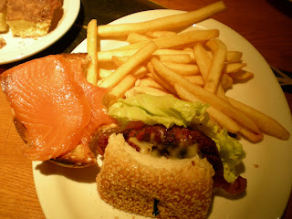 Je viens d'avoir une illumination : il faudrait que je coupe le bagel en deux, que je le fasse rôtir au toaster, que j'étale de la crème fraîche, et que je rajoute une tranche de saumon fumé... Ca devrait être une tuerie !!