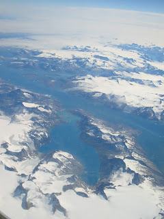 Je commence donc cash avec un bout du voyage en avion. On part de paris avec un peu de retard puisque vive les alertes a la bombe... passons. direction London, puis on traverse l'angleterre, on bifurque alors vers l'islande, puis le groenland, pour arriver au Canada.