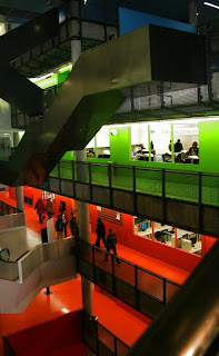 Et puis ici, chaque étage correspond à un département différent. Et vu que nous avons choisi de faire une grande salade composée en mélangeant des cours pris ici et là, et ben on se ballade un peu partout. Et dans le pavillon Lassonde, chaque étage a une couleur différente.