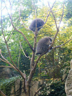 A l'entrée j'ai demandé pourquoi il ne fallait pas donner à manger à tic et tac : C'est parceque sinon ils finiront par t'attaquer si tu ne leur donnes pas de graines. Mais pour le moment on n'en est pas là, et c'est eux qui t'approchent pour voir si tu as de la nourriture à leur donner. J'ai donc même eu l'occasion de caresser un écureuil.