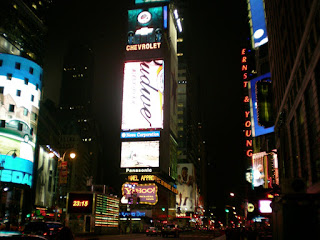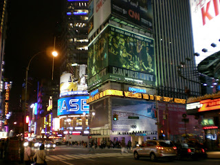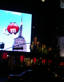 Demi-Tour en direction de Times Square. Et là j'en suis resté bouche-béée tellement ça sort de l'ordinaire. On se croirait en plein jour tellement il y a d'éclairage. Les facades des buildings sont surchargées d'écrans en tout genres qui diffusent des publicités, on voit des couleurs partout partout partout. les magasins sont ouverts jusqu'a 1h du mat, c'est cool. J'en profite par conséquent pour entrer dans le M&M's Store... que j'aurais bien dévalisé si j'avais pû.
