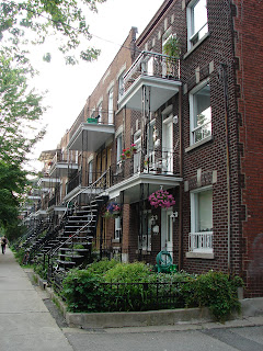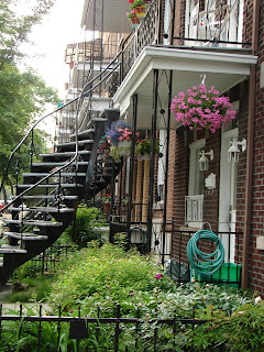 Quand on se balade dans le plateau, Rosemont ou Ahunstic, l'oeil est accroché par les escaliers extérieurs présents devant chaque maison. Il y a de tout, droits, en spirale, en S, en colimaçon, tout simples ou travaillés... Décorés, servant d'appui pour les vélos ou de squatt pour les écureuils...