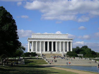 Je remonte les jardins jusqu'au World War II Memorial. C'est superbe. J'aime beaucoup le design. Un peu plus loin, c'est le West Potomac Park avec au bout le Lincoln Memorial : un monument bien connu pour son histoire et les films qui l'utilisent. J'ai joué les Martins Luther King en haut du bâtiment : I have a dream... But I don't want to talk about it. Ce qui a bien fait marrer les touristes américains qui me filmaient