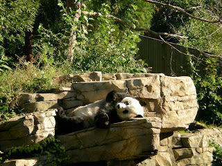 Le lendemain, je prends un vrai petit dej à l'américaine avec tout le monde : Fried Eggs, Bagels, Cheese Cream, Jam & Cofee. Troop bon. Chloé part la première et Cathy nous dépose, Marcel et moi, à la gare avant d'aller bosser. Avec Marcel, nous passons par le Weedley zoo pour dire bonjour aux pandas. Puis il part travailler et je découvre la capitale...