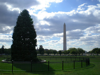 La première chose à faire, c'est de saluer George. De loin seulement. The White House est en effet bien gardée, mais je pensais que ce serait bien pire. A côté, il y a le Christmas Tree et le Washington Monument. De loin, ça a l'air grand. De près... c'est tout simplement gigantesque !