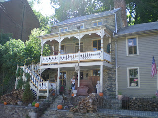 Il s'agit en fait d'un petit village traditionnel, les gens se sont habillés en costumes d'époque, et c'est très rigolo d'aller les voir pour négocier l'achat d'un haut de forme... On remarquera aussi que les maisons ont toutes, ou presque, des drapeaux américains accrochés à la facade. Ca surprend un peu au début, mais on s'y fait vite. Et puis c'est la préparation d'Halloween, les citrouilles sont donc de sortie...