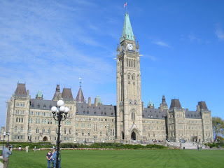 Mais au fait, à Ottawa, qu'y a-t-il a voir ? Question très pertinente. Dans le bus, on jette un bref coup d'oeil au guide (on sent l'organisation à l'arrache : on part à Ottawa sans savoir ce qu'il y a là-bas...) Réponse du routard : la relève de la garde (mais c'est le matin, donc trop tard), le marché (dommage, c'est le vendredi), les lumières sur le canal la nuit (heu... on rentre à 20h) et le parlement. Bref, que des bonnes nouvelles !