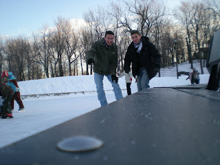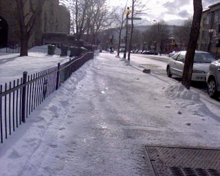 Si je parle de la ville sousterraine, c'est parce qu'hier, on n'a pas eu droit à de la neige, mais à une averse de pluie verglaçante terrible. Tous les trottoirs sont désormais recouverts d'environ 1cm de glace ... Avec les rafales à 50 miles à l'heure, c'était le pied total ! Heureusement qu'ils sont là ces sous terrains pour ne pas geler sur place.