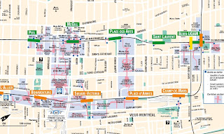 Quand il fait froid comme en ce moment, les rues blanchissent. C'est pas de la neige, ni du givre, c'est juste l'asphalte qui gèle tout seul. Plutôt que de marcher sur les trottoirs, on préfère se balader en ville (aller au centre eaton aussi) en utilisant les souterrains. La légende de Montréal ville sous terre n'en est pas une : Elle s'étend effectivement sur une dizaine de stations de métro. Rien que ça.