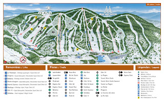 Demain, on va aller skier... Il y a des stations un peu partout autour de Montréal, et Nathalie m'en a dit pas mal de bien. Des sapins partout, des pistes qui finalement ressemblent à celles des stations françaises, si ce n'est que la couche neigeuse est "un p'tit peu plus" importante. Surtout avec les 50cm qui sont tombés aujourd'hui.
